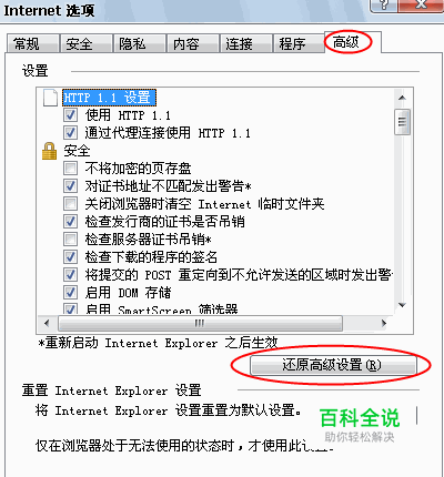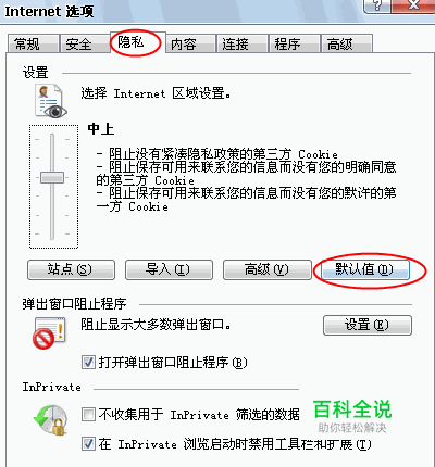 1、恢复浏览器设置为默认状态: a、点击“工具”--“Internet 选项”: 进入Internet选项 b、点击“安全”标签页,点击恢复“默认级别”: 安全标签恢复默认级别 c、点击“隐私”标签页,点击恢复“默认”设置: 隐私标签恢复默认级别 d、点击“高级”标签页,点击“还原默认设置”:
