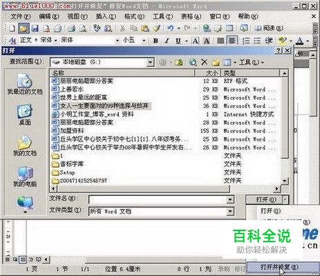 使用word2003本身具备的“打开并修复”功能通常可以有效恢复已经损坏的Word文档,操作步骤如下所述: