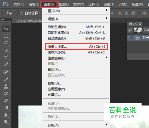 打开一张图像,选择Photoshop CS6中文版“图像”-“图像大小”命令,快捷键【Alt+Ctrl+I】。