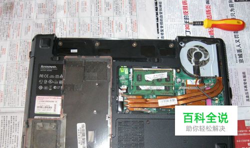 拆开Y450后背主仓,可以看到内存,散热风扇,散热铜管以及下面的CPU/GPU。 放大图看看灰尘,注意拆风扇需要拆的螺丝。