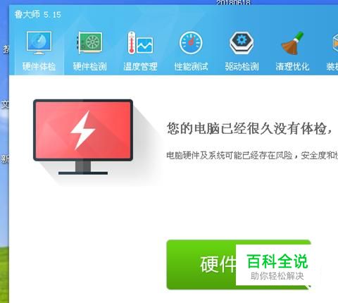 安装完成后打开鲁大师,在主界面左上点击“硬件体检”。