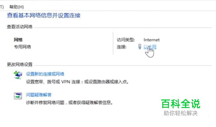 进入共享中心以后会看到本地的以太网连接,我们点击它即可,如下图所示
