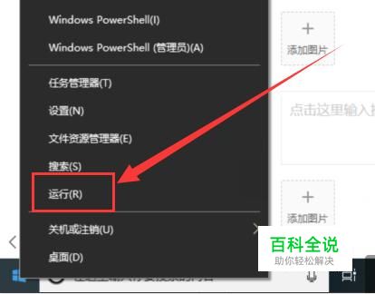 打开电脑,点击右击微软标志键,点击“运行”,进入下一界面。