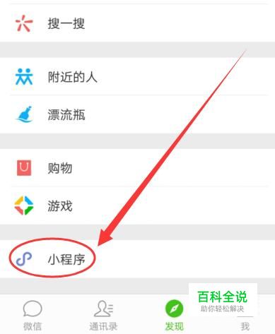 打开微信,在发现页面点击“小程序”,进入下一界面。