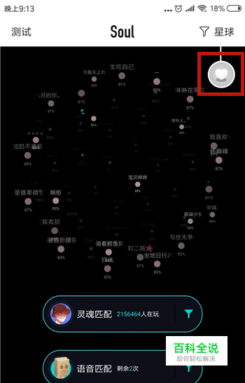保证版本的更新后打开soul,在星球的右上角可以看到灰色的心,这个就是恋爱玲,点击一下。