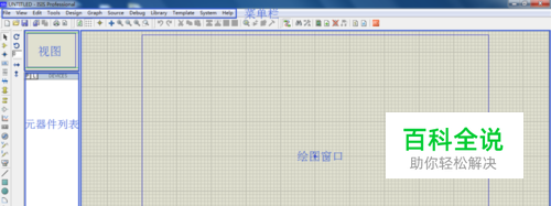 打开Proteus软件,出现以下界面,右面的一大块是绘图窗口,左面有视图小窗口,紧挨着下面分别是元器件列表、控制按钮