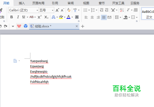 新建打开一个WORD文档,在页面中随便输入一些英文字符,如下图所示。