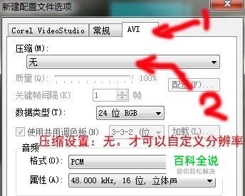 压缩,必须选择无才能进行,分辨率的自定义设置,