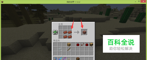 首先我们来看红砖块的合成方法:需要四个红砖来合成一个红砖块,在工作台或者E键都可以合成,摆放方式是4个红砖摆成一个正方形。