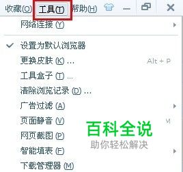 打开浏览器,找到“工具”选项卡并点击,然后在弹出的下拉列表中选择“Internet选项”项。