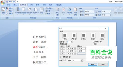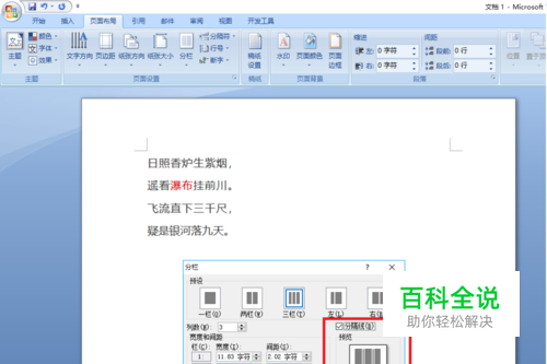 word2010分3栏,添加分隔线,设置栏间距 2025-05-18 20:16:16 word2010分3栏,添加分隔线,设置栏间距 操作方法 01 新建文档,如图所示 02 选择分栏效果 03 选择分成3栏 04 如果想调整,添加分隔线,设置栏间距。 05 添加分隔线效果 06 设置栏间距 赞 (0) 相关推荐 如何将Word文档中的文字分栏并添加分隔线 Word是现在十分常用的文件类型,有些新用户不知道如何将Word文档中的文字分栏并添加分隔线,接下来小编就给大家介绍一下具体的操作步骤.具体如下:1. 首先第一步先打开电脑中的Word文档,接着根据下 ... Word怎样分栏,Word如何分两栏三栏多栏加分隔线 在文案.报纸.宣传刊物的编辑过程中,对文章版面进行编排是有一起的设定的,其实有一项就是分栏,我们通常用来进行编辑的软件中基本上都有这样的功能,这里以Word为例,给新手朋友分享一下Word怎样分栏,W ... 如何给Word文档设置添加分隔线 我们可以选择给Word文档中添加直线.虚线.波浪线等各种线的分隔线形式,今天就跟大家介绍一下如何给Word文档设置添加分隔线的具体操作步骤.1. 如图,进入Word文档的编辑页面,在想要添加分割线的位 ... 怎么快速给Word文档添加分隔线 word是一个文字处理器应用程序,它是我们办公.学习中不可多得的好帮手.不少小伙伴还不太熟悉有关的操作技巧,因此常常存在困惑.比如:很多用户为了让文档看上去条例更清晰直观,想设置分隔线,可又不知道怎么 ... Word2007中快速添加分隔线 Word2007中快速添加分隔线 步骤/方法 01 有些朋友常常需要在Word 2007文档内容中加上一条横跨整页的分隔线,不过总是找不可快速的方法来实现.通常,在Word 2007中加入横线,是在& ... 添加分隔线,竟然不是画出来的 在制作.美化文档时,有时会在文档中添加分隔线.分隔线的种类繁多,利用形状工具,可以设计出各种样式的分隔线.但有没有发现,线条和文字经常会因版面修改而发生错乱,画这些线条也很麻烦.看下图,这样的线条你如 ... 如何在Excel中给页眉添加分隔线 众所周知,当我们在Word中添加页眉的时候,在页眉中会自动出现分隔线.如果我们在Excel中添加页眉也需要分隔线的话应该怎么实现呢?下面就给大家提供一种方法,呵呵-- 例如,我们需要如下图所示的页眉分 ... WORD2007有分隔线怎么办 Word2007删除分割线方法: 1.点击线上方,点击"清除格式",即可删除.如图所示 word2007分割线添加方法: 1.打开word 2007点击右上角图标,点击" ... word2010中怎么设置段落间距 我们在使用Word2010编辑文档的过程中,常常需要版面要求设置段落与段落之间的距离。本文就来介绍一下设置段落间距的三种方法。 方法一 打开Word2010文档页面,选中需要设置段落间距的段落,当然也 ...