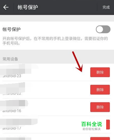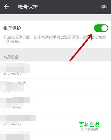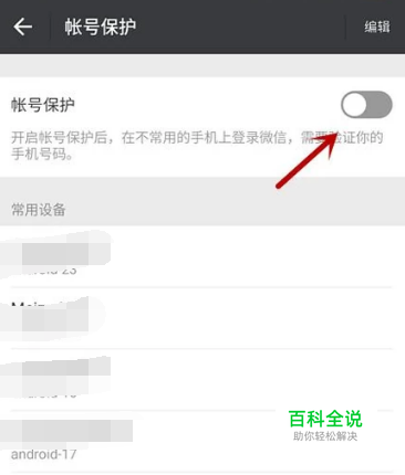 在帐号保护界面,选择【编辑】,可以对【常用设备】进行删除操作。