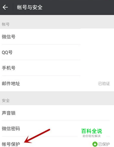 进入安全设置,点击【帐号保护】。。