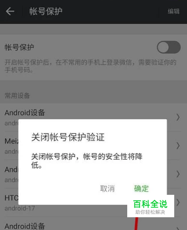 点击后即可关闭帐号保护功能,在新设备上登录微信将不会在进行短信验证。