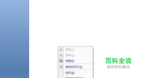 我们先打开ppt,新建一个空白幻灯片,鼠标右击选择设置背景格式