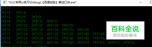 修改好后编译,连接,运行 这才是我们要的九九乘法口诀! 在编程中会出现很多问题,有错误很正常,不要害怕,我们就是在不断改错中提高自己的!小编祝大家学有所成!