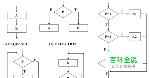 PAD图基本符号 和程序流程图及NS图类似,基本符号包括顺序、分支、循环、判断等。