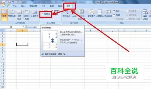 点击菜单栏“视图”,取消“网格线”前面复选框的勾选,此时表格显示为白板。