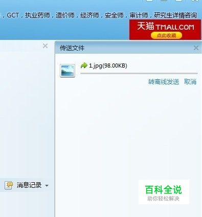 接着打开需获取IP地址的好友的聊天窗口,给好友传送一张图片,是传文件哦,在传送过程中,再次重复上一步,如图