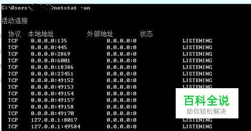首先打开运行程序或者直接按“WIN+R”,输入“cmd”,输入命令“netstat -an”,记住t后面按一下空格键。如图
