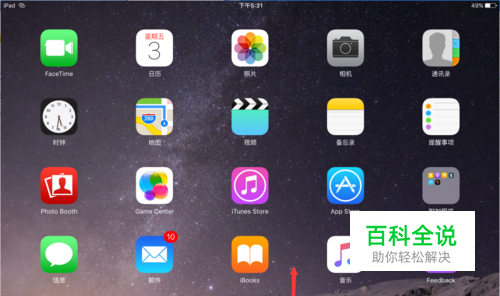 首先,我们点亮iPad屏幕,在ipad桌面从最下往上滑页面,呼出状态栏