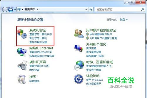 在控制面板里点“系统和安全”