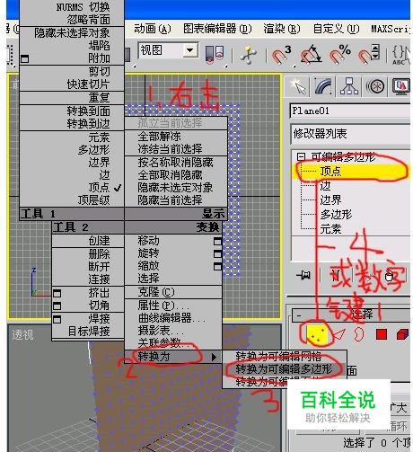 2,点击左上角的工具-顶点-点击转为可编辑多边形,在选择定点图形。