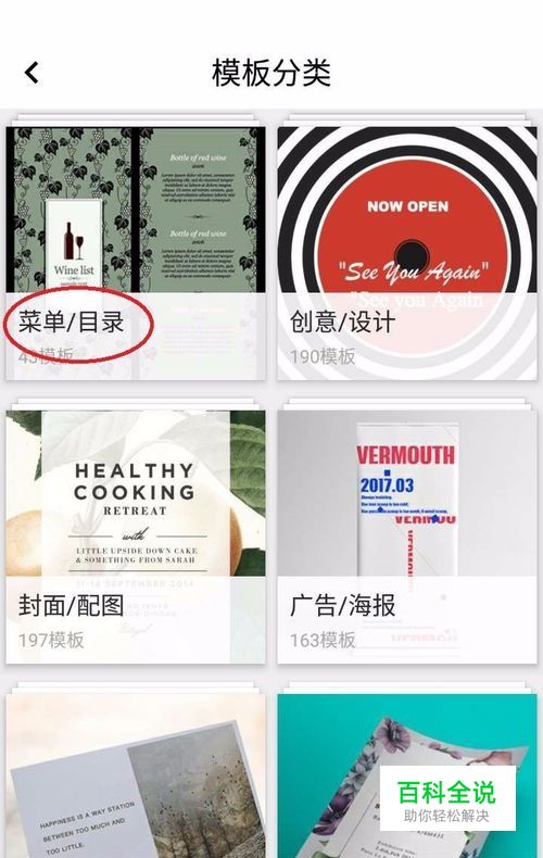 在模板分类页中,找到菜单/目录类,点击进去选择菜单模板。