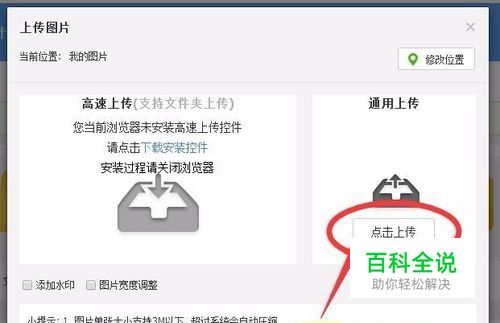 第三步 上传图片 1.进入页面后找到图片空间点进去上传图片。 2.点击“上传图片”上传图片。 3.点击“点击进入”按钮。 4.选择文件,用鼠标左键双击要上传的图片,稍等一会儿图片就上传好了。