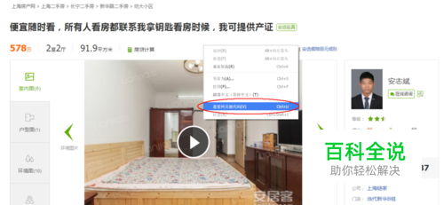 这个时候就会转到这个视频地址界面,这个就是这个房源的视频; . 在视频的任意位置点击【鼠标右键】选中【视频另存为】,然后把视频保存到桌面即可~