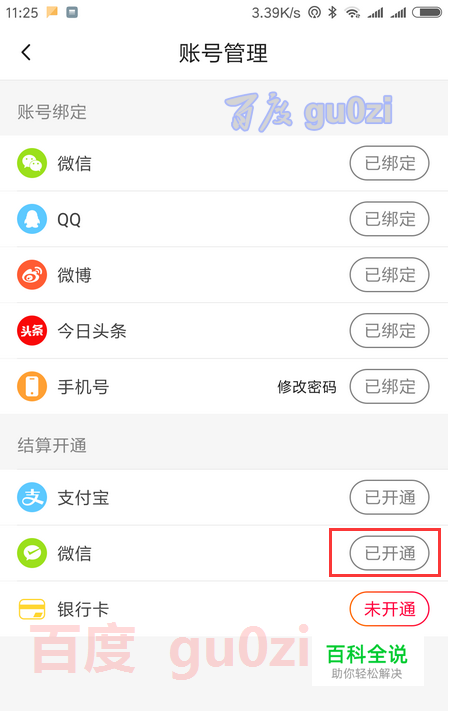 在账号管理中,就可以看到微信绑定成功了。 21:09 周日 18/4/8