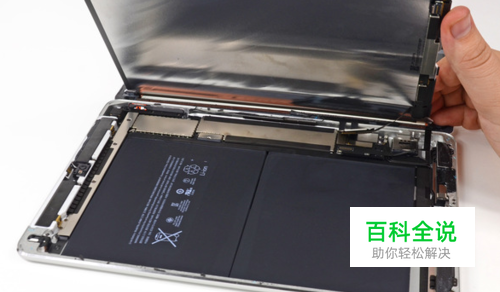 在把屏幕拆下来之前还要拧掉一些螺丝,这是就要用专业的螺丝刀拆除pad air机身上的小型螺丝。 然后就是用专业的镊子吧LCD面板分离出来。两块电池占据了大部份的空间。