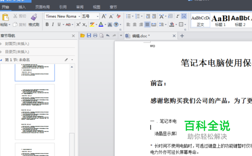 显示跟踪链接的效果。 单击目录中的文字后,系统自动跟踪链接,跳转到文档中该标题所处的位置,效果如下图所示。