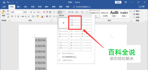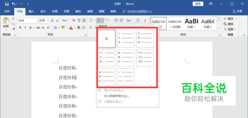 定义完成后,我们可在编号库中找到我们新定义编号格式。选中我们需要添加编号的文字,点击我们刚定义好的格式,即可为文字添加编号。