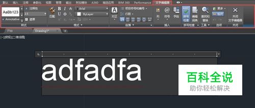 到了高版本,实现了在位编辑,文字编辑框变成了完全透明的效果,文字做到了所见即所得,以前的对话框演变成了工具栏和标尺,到了高版本,有了RIBBON界面后,文字编辑器被放到了顶部的面板中,图形窗口中只能看到标尺。