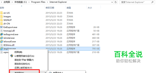 首先创建应用程序的快捷方式 找到自己想加入开机启动项的应用程序,本文以iexplore为例 在iexplore应用程序点击右键->发送到->桌面快捷方式 (也可以直接用鼠标拖动到桌面)