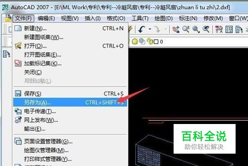 在弹出的对话框中,选择保存位置和文件名,同时注意文件类型选择下拉列表中的2004/LT2004 DXF模式