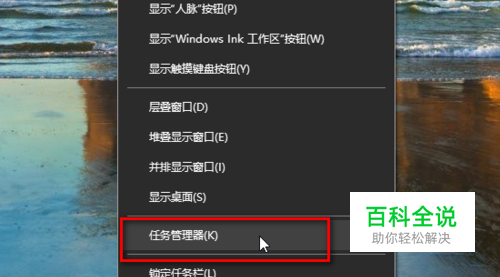 在任务栏空白处右键(或同时按下Ctrl+Alt+Del三个键),选择“任务管理器。
