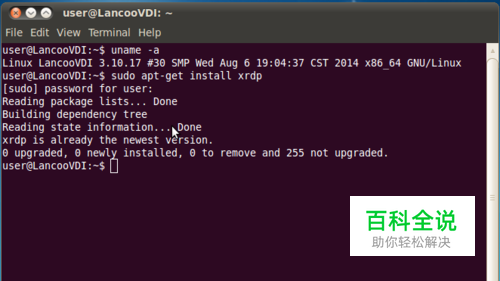 给Linux系统安装xrdp工具 在命令行中输入:sudo apt-get install xrdp 输入后回车根据提示输入用户密码