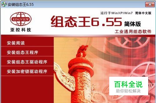 组态王软件的安装: 组态王软件存储于一张光盘上。 在光盘驱动器中插入组态王软件的安装盘,系统自动启动Install.exe安装程序。 只要按照提示的步骤点击安装就可以了。