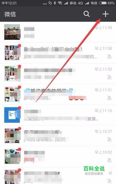 在微信的聊天主界面,点击右上角的“添加”按钮。
