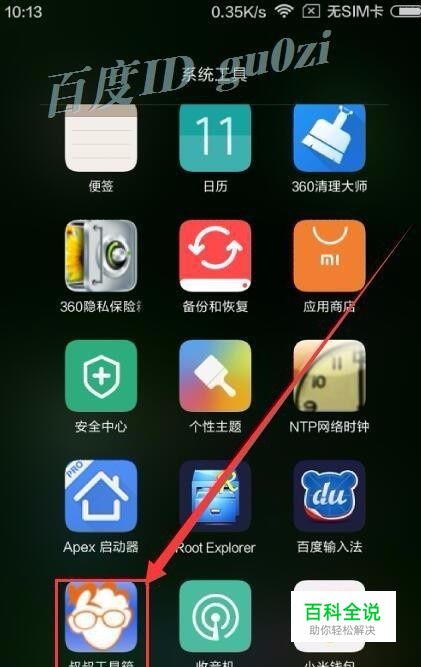 打开 百度手机助手搜索 移动叔叔工具箱,下载并安装,然后打开. 或者通过以下网址下载 mobileuncle.toolbox_331.apk http://pan.baidu.com/s/1o6PLJ2U