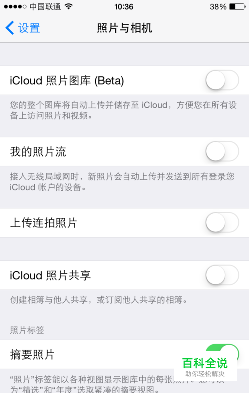 进入设置界面后,我们往下拉,不难找到照片选项,进入照片后我们可以设置照片相关的一些问题。