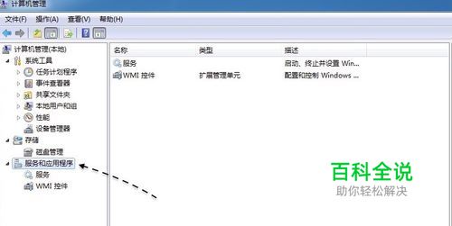 接着在计算机管理窗口中,点击展开左侧的 “服务和应用程序”一栏,如图所示