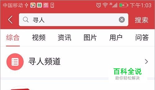然后我们就可以看到搜索结果了,有“寻人频道”、“头条寻人”等,此时我们直接点击“头条寻人”后面的红色按钮“我要寻人”