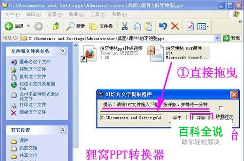 选中要转换的PPT文件,直接拖曳到"PPTConverttoDOC"程序里,然后单击工具软件里的"开始"按钮即可转换,转换结束后程序自动退出: