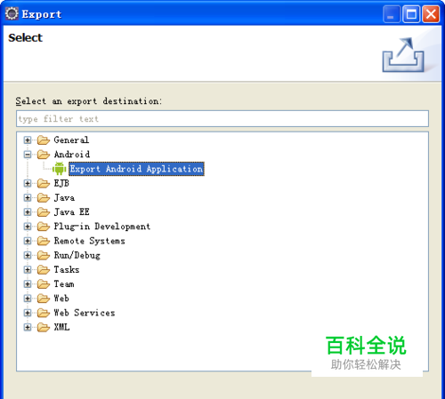 选择“Android”->;“Export Android Application”,点击“Next”: