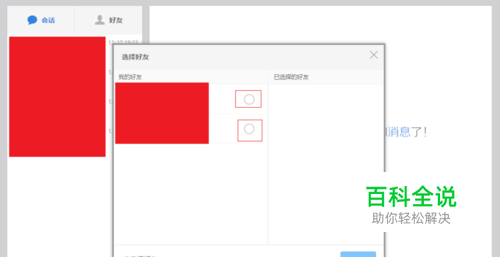 在出现的界面要求选择好友进入群里(至少邀请两个,不然无法生存群链接的),选好好友后,点确定。