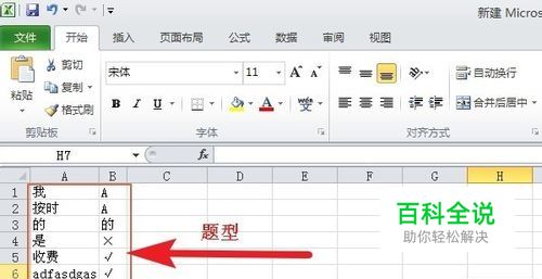 如图所示,举一个简单的例子来当做需要制作的题库,图中有选择、判断、填空等题,第一列为题目,第二列为答案。