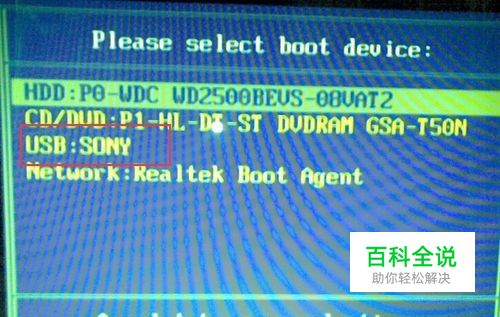 2、进入快捷启动项选择界面,此时只要选择U盘所在的位置即可从u盘启动,如图所示: